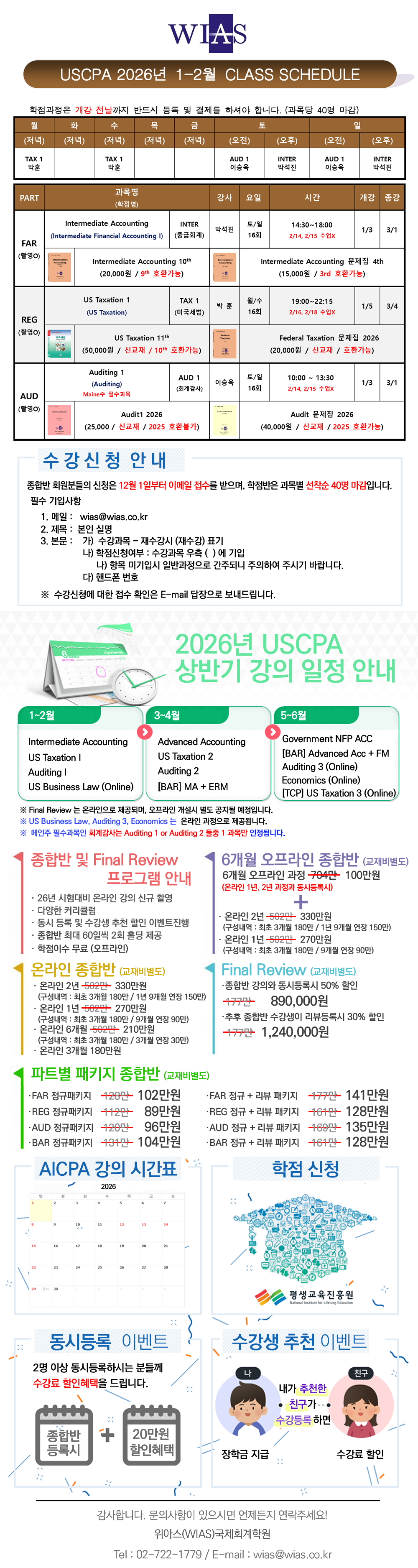[USCPA] 26년 1-2월 강의스케쥴 및 수강신청 안내