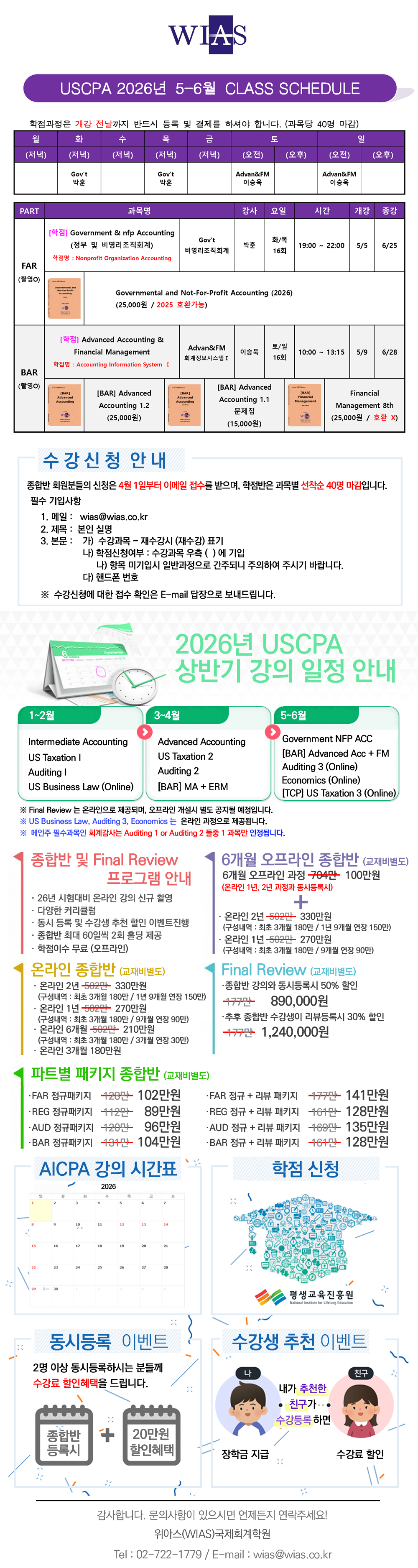 [USCPA] 26년 5~6월 강의스케쥴 및 수강신청 안내